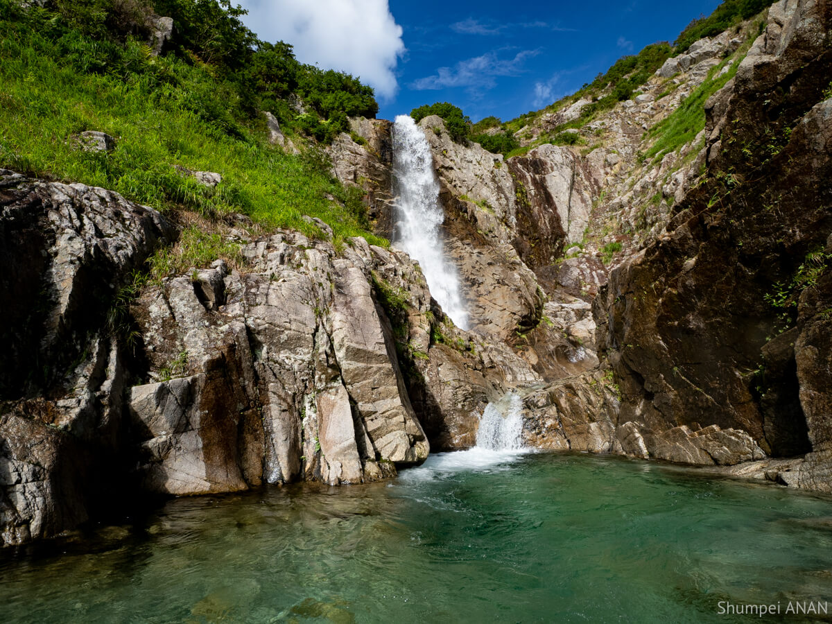 落差は諸説あるが大きく見積もって60mくらいかな? 見事な巨瀑、山域を代表する滝と言えるでしょう。