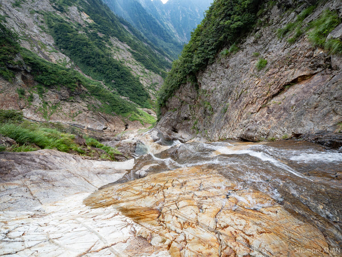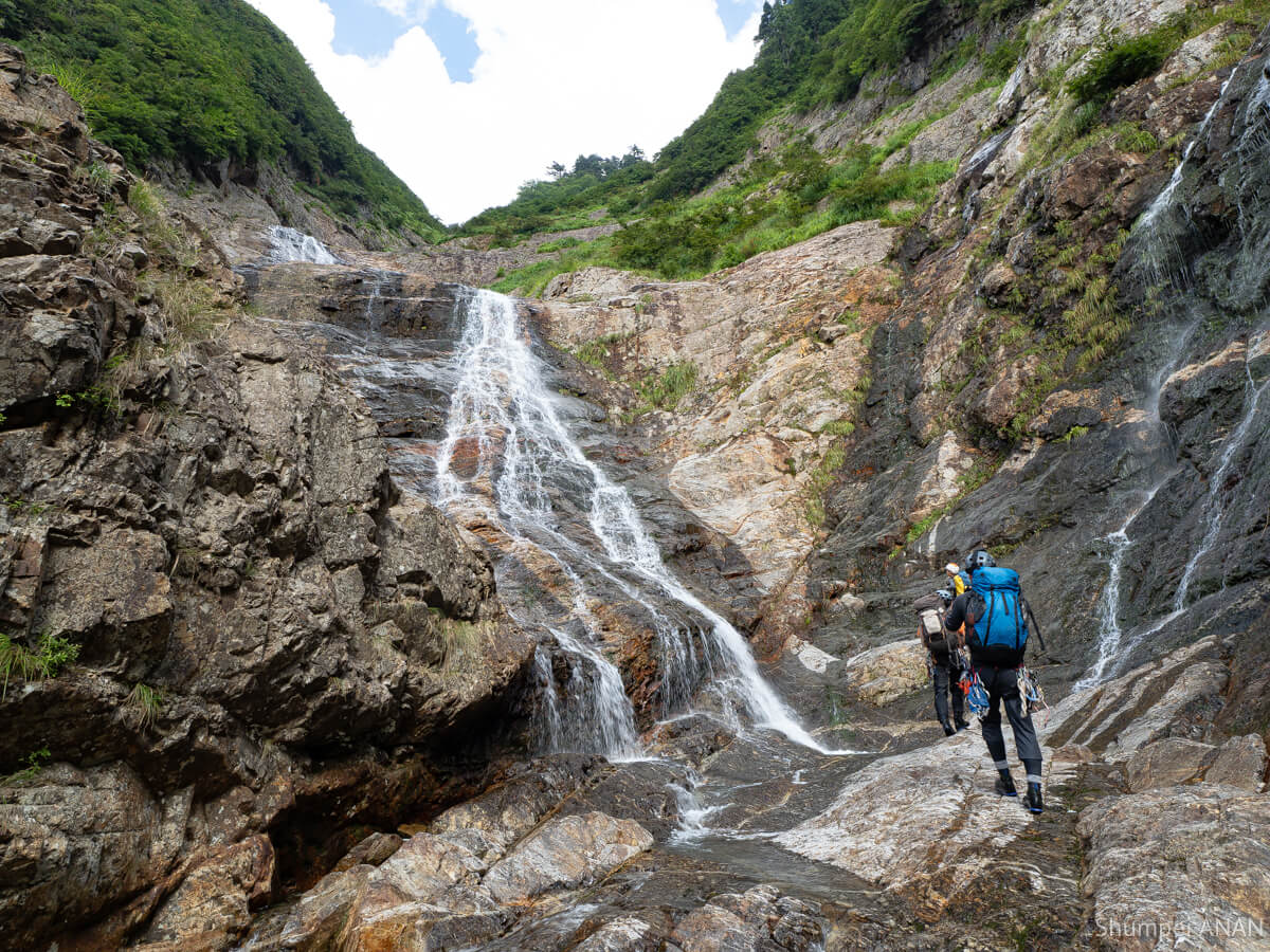今回は本流の北沢方面に向かう。こちらも巨大な連瀑となり、この二俣は日本有数の渓谷景色であろう。