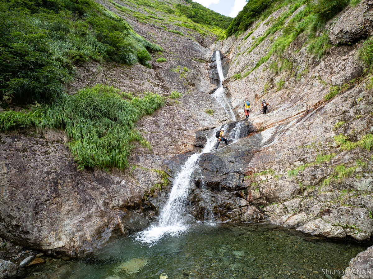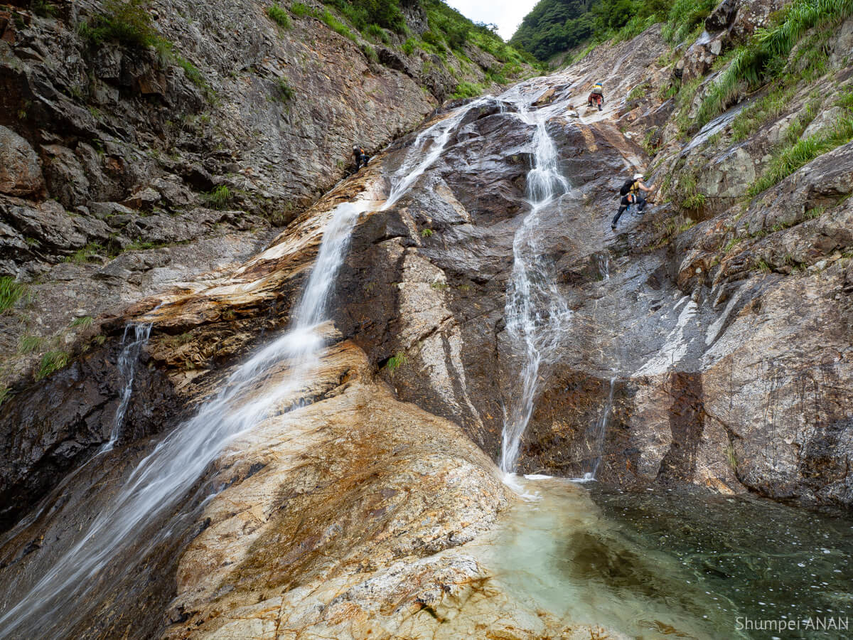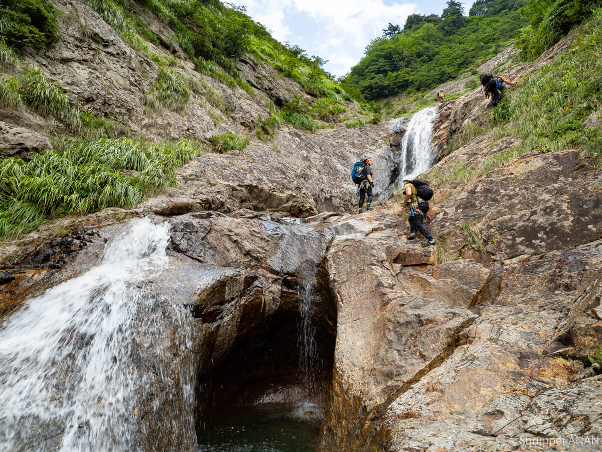 ここからは水無川の核心部。 続く「逆くの字滝」から始まり、快適に登れる大きな滝が連続し、本当に素晴らしい。ここは2度目だが、感動はこれっぽっちも変わらない。