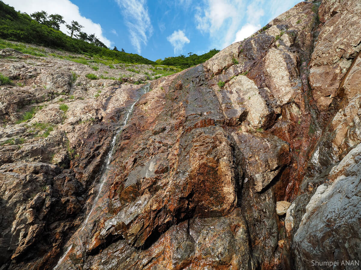 左岸から入る真沢の幣の滝は高差150m超の超巨大スラブ滝だが、今日はいささか水量が少なく迫力不足だ。