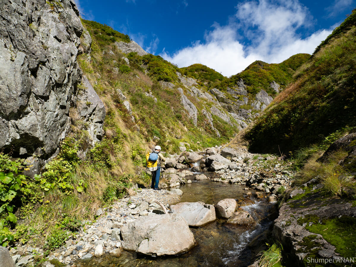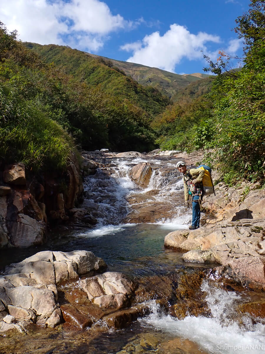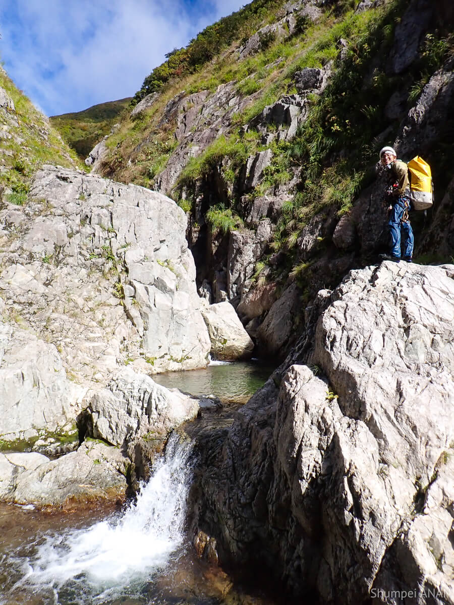 奈良沢を下降して三ツ石沢出合いを目指していると、なんとこんなところに人影が!?