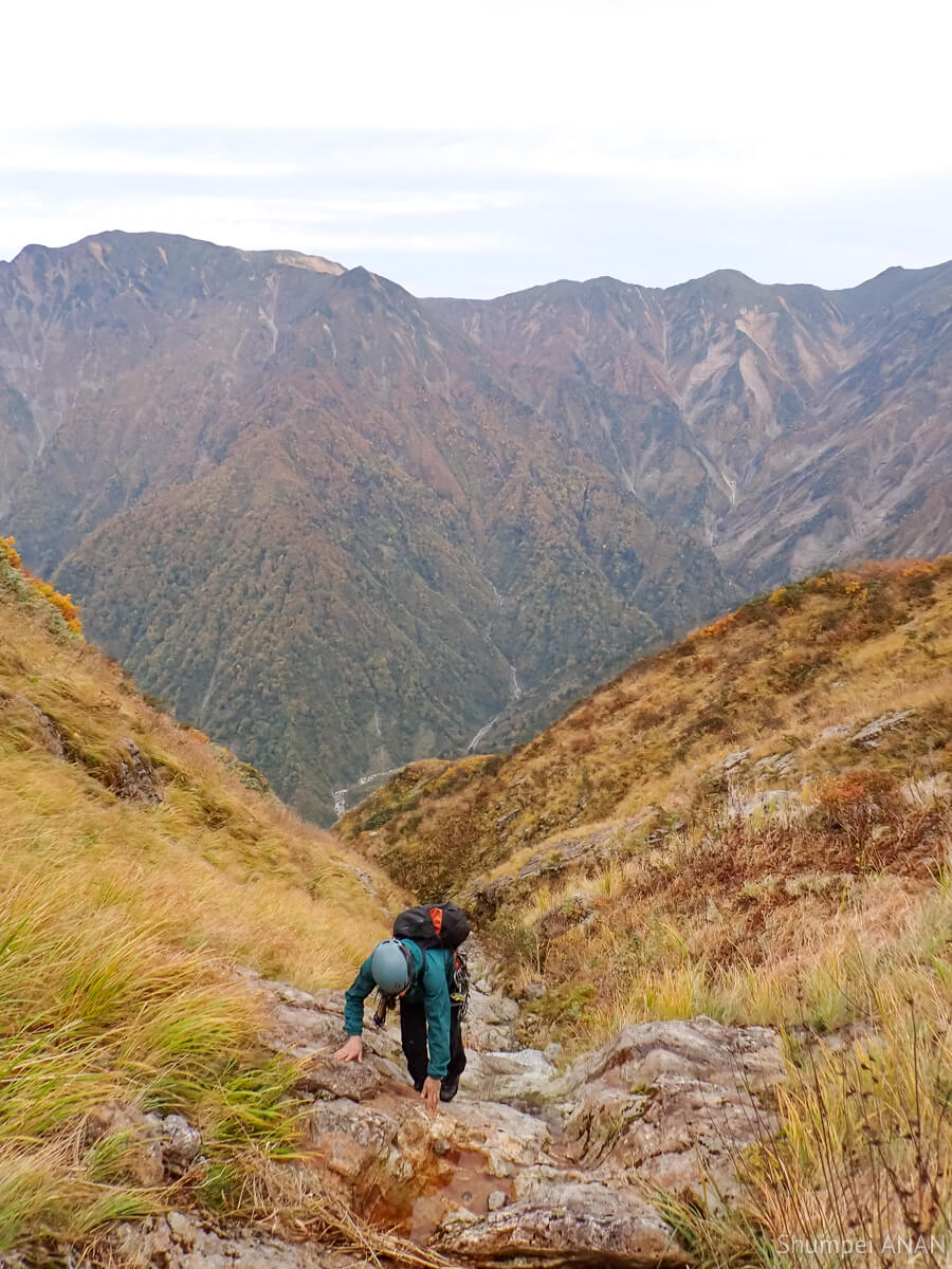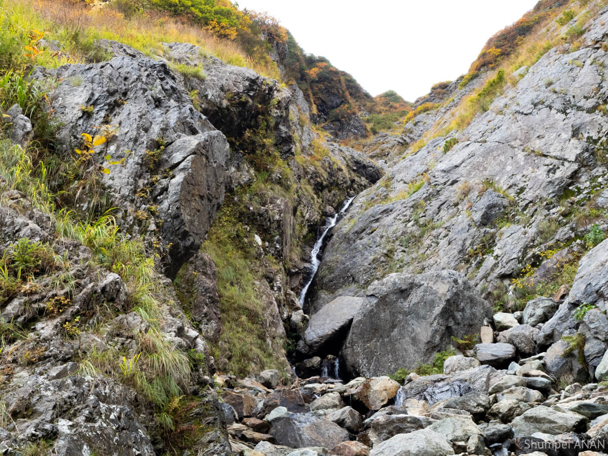 右俣は入道岳へ直接突き上げる沢で、その分行程も長くなるが、ここは本能に従い記録未見の右俣へ行くこととした。