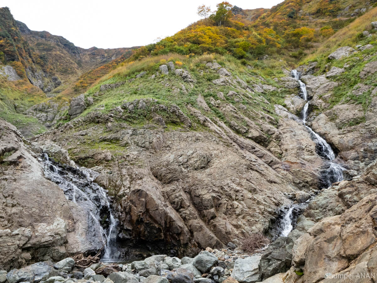 東不動滝を越えると、壮大な二俣で真っ先に連瀑を掛ける右俣に目が行く。
