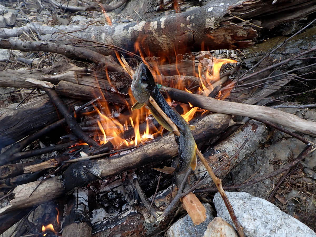 先へ進み、また塩焼きサイズが釣れたのでいただくこととした。