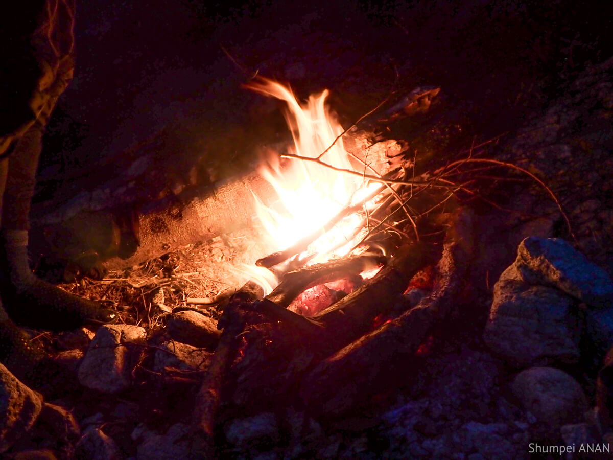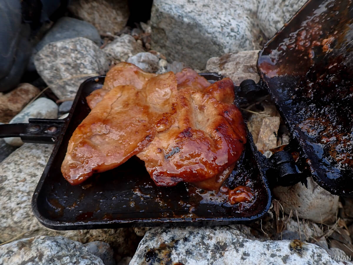 とにかく食って食って食いまくる。 下界よりもご馳走が出てきて笑うしかないw 岩魚もいい感じに焼けて、大満足の宴会となった。