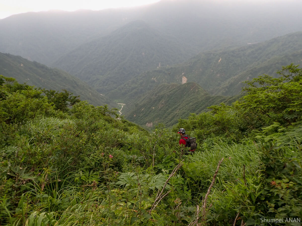 8/24 水上沢Co880幕営地(6:20)-甚六山のコル(9:00)-源太沢出合(11:40)-泡滝ダム(14:00)