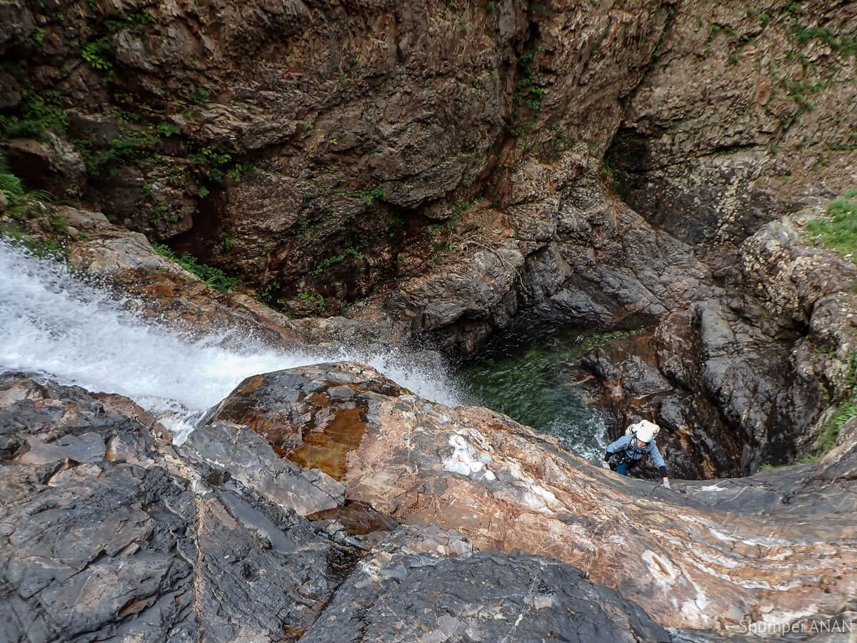 マワットのセンは10mほどで幅広い滝壺を持っている。 右壁から取り付くが、凄まじいヌメりに思わずたじろぐ。 慎重にタワシで磨きながら滝上へ抜けたが、想像よりも悪くて みんなこれをフリーで登ってんだから信じられない。
