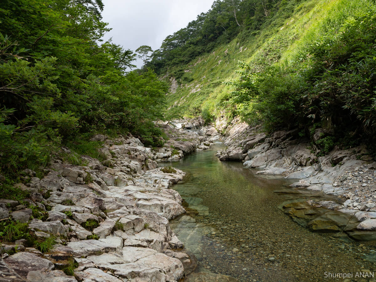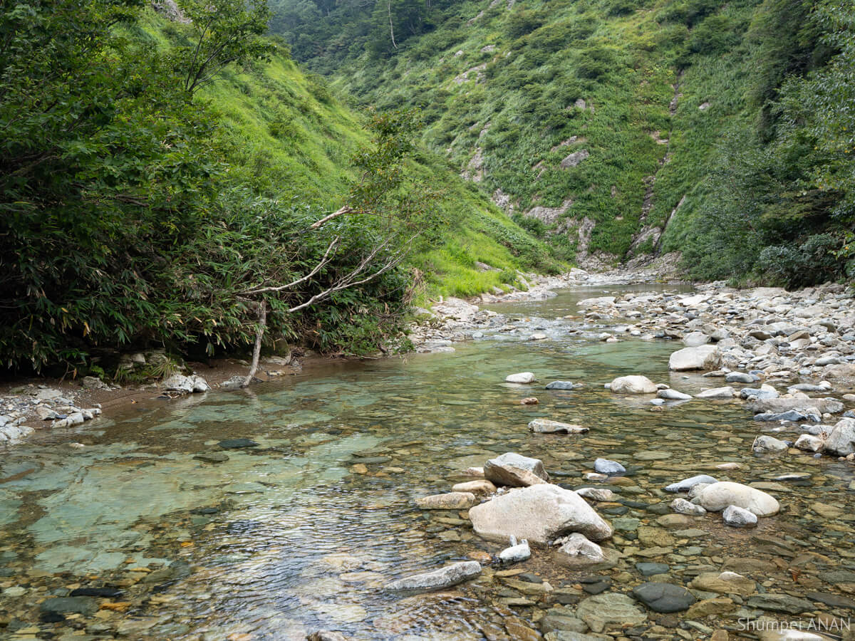 そしてドウドウセンより上流はこれまでの険しさから打って変わって、非常に穏やかな沢となる。