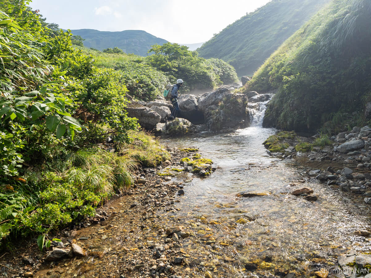 朝靄が立ち込める中、いよいよ赤谷川源流に踏み込む。