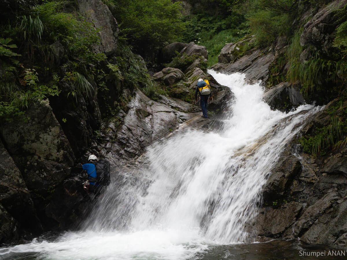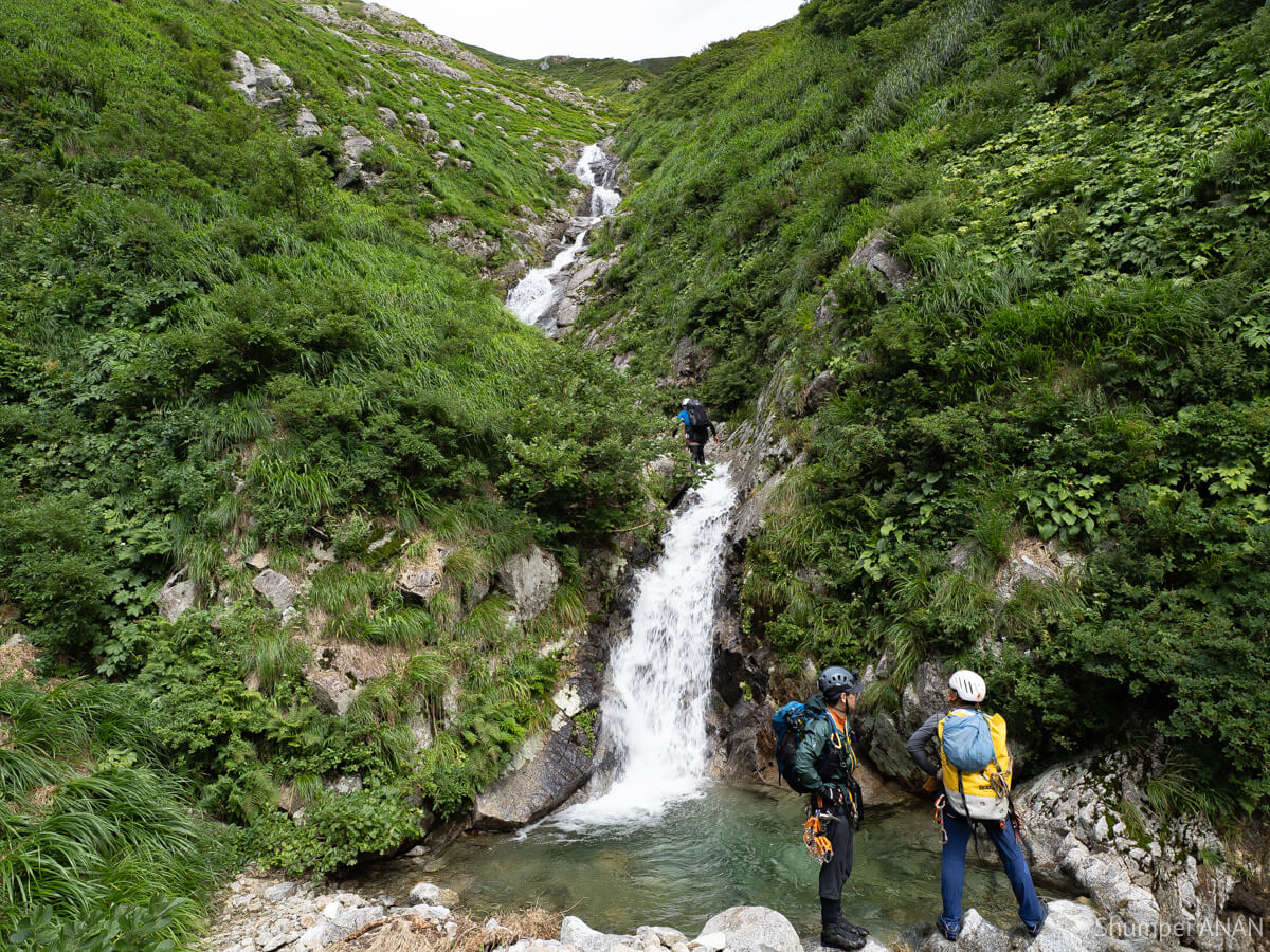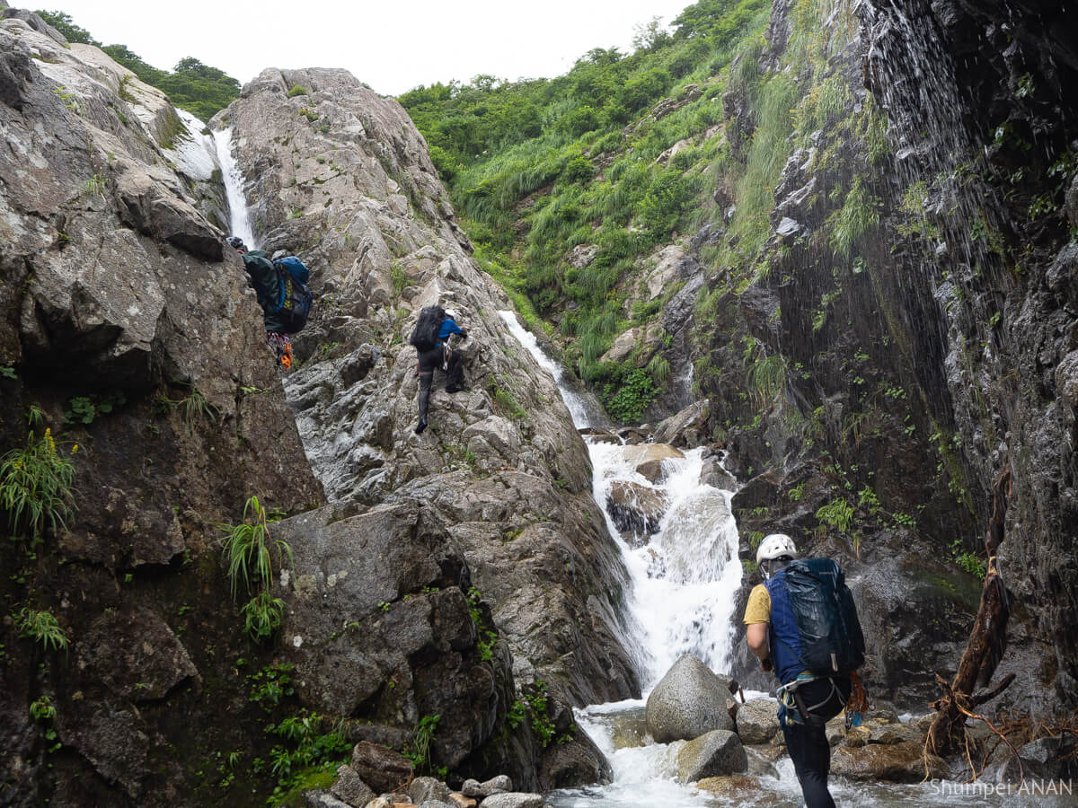 沢を少し進むと、昨日までのゴーロから一転して滝がたくさん現れるようになる。