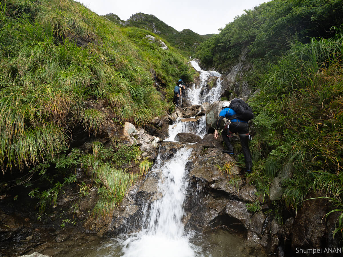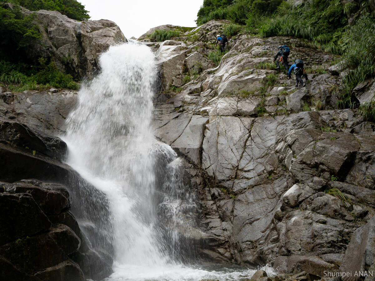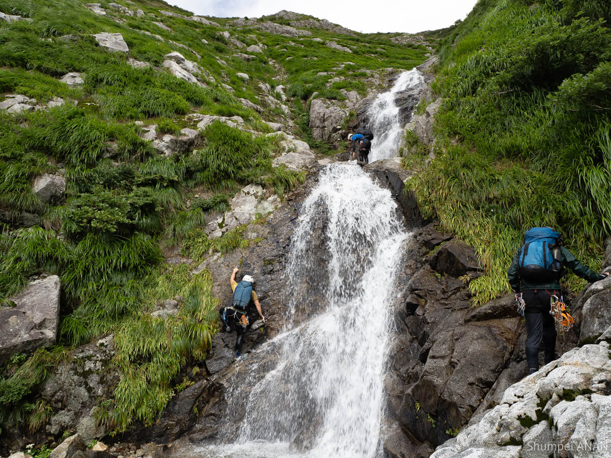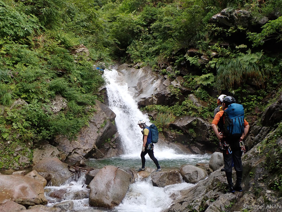 沢を少し進むと、昨日までのゴーロから一転して滝がたくさん現れるようになる。