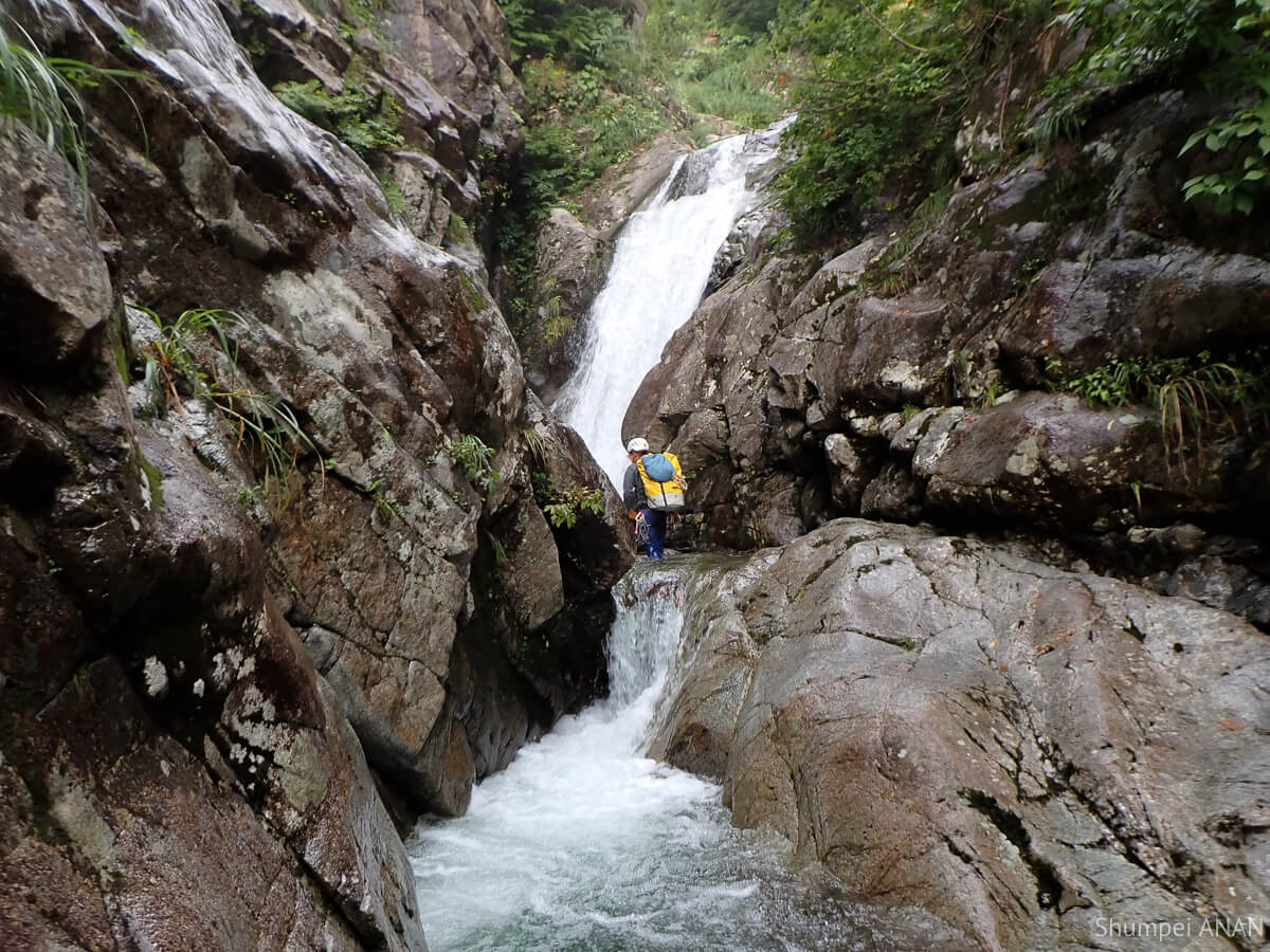 小悪い巻きや小滝の登りはあるが、ロープを出すってほどでもなく楽しく進む。