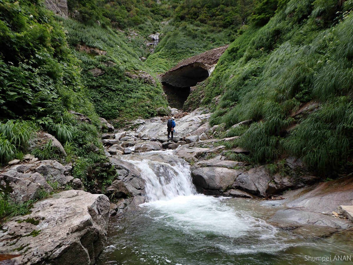 前方に雪渓が現れたと思ったが、Co980の左岸支流にかかっているもので本流には一片の雪渓も残っていないようだ。