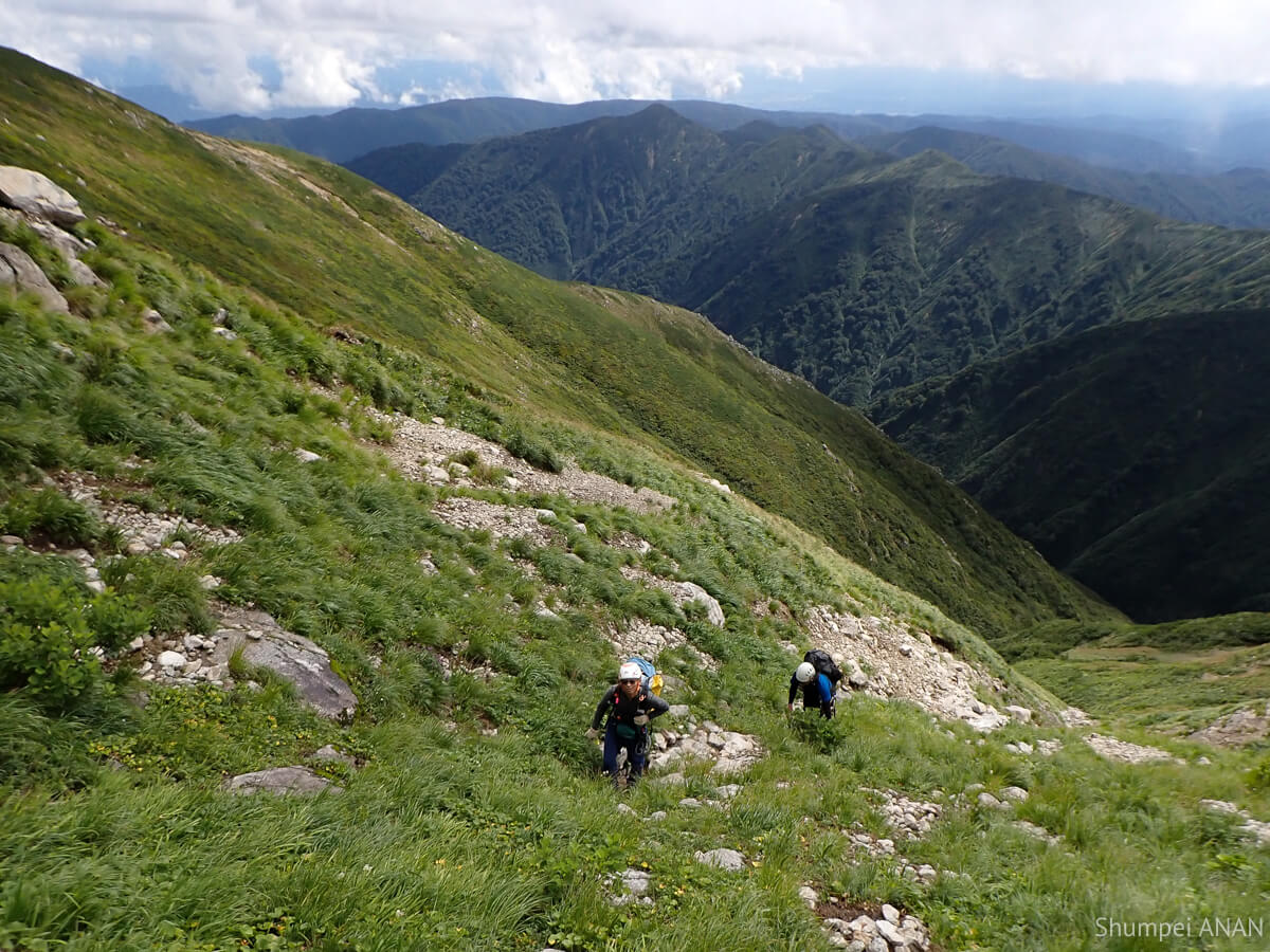 9/15 C1(6:40)-岩魚止沢出合(9:00)-大朝日岳(12:30)-二股出合(15:00)-朝日鉱泉(16:25)