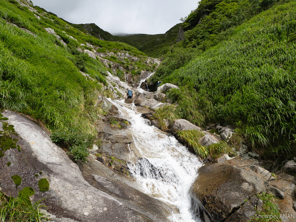 ほとんどゴーロもなく、滝やナメが続き朝日連峰の中でも出色の爽快沢だ。