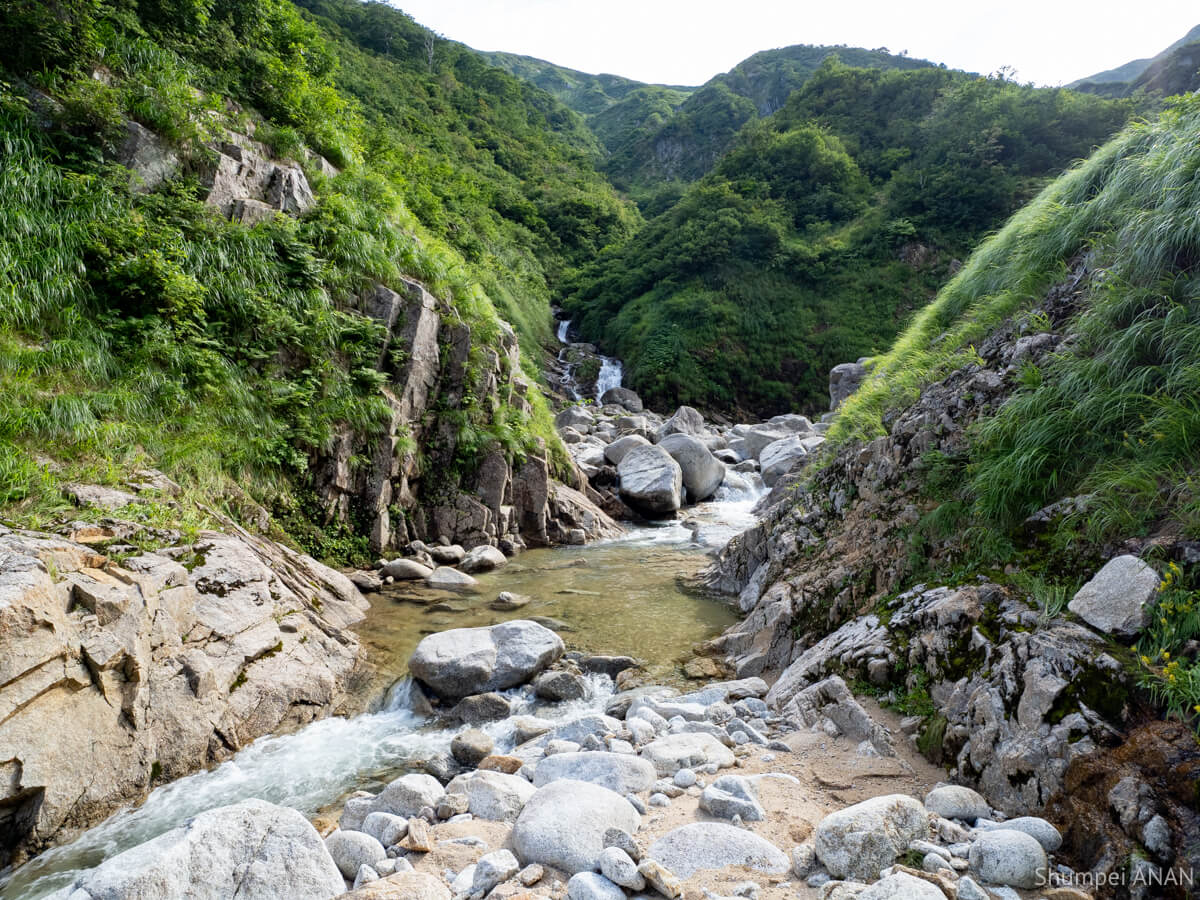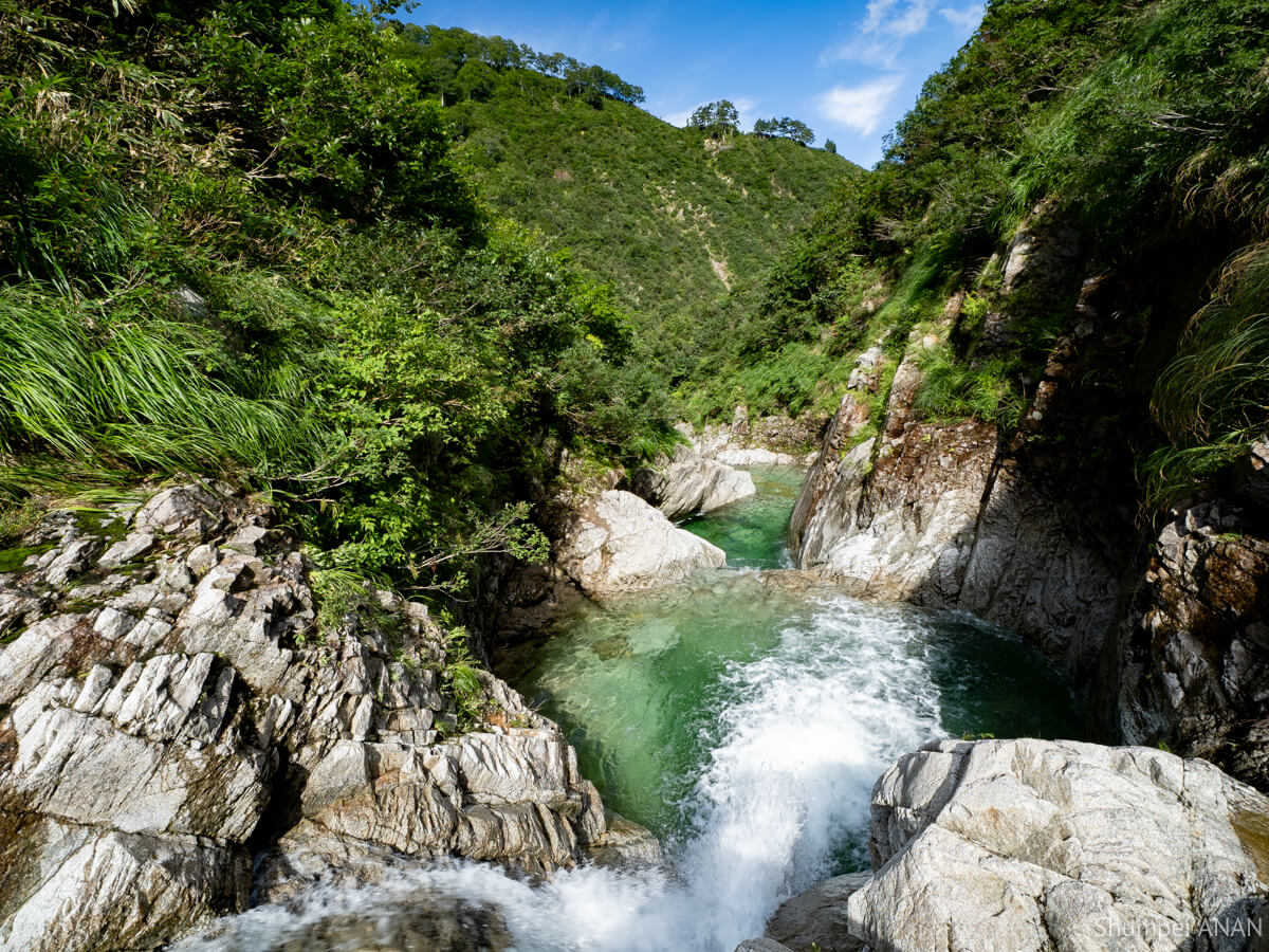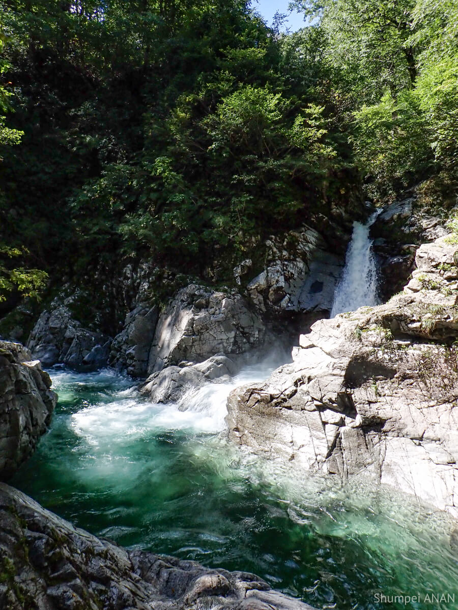 岩盤が発達した沢だが、森はとても近く高巻きもそれほど苦労はしない。 ナメや釜を持った滝が多く、ポムチムの最も好きなタイプの渓谷だ!
