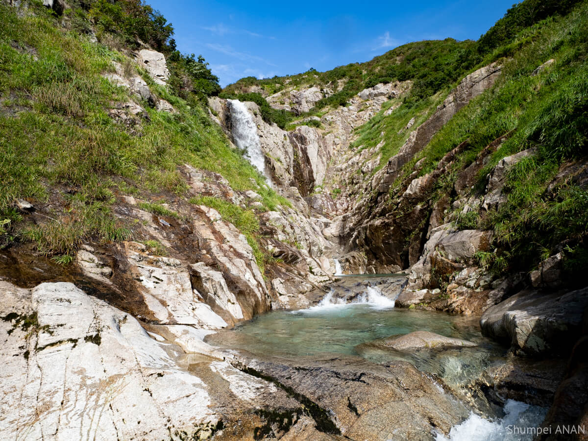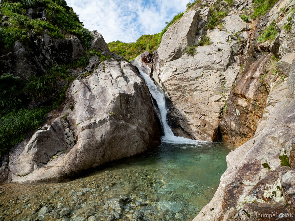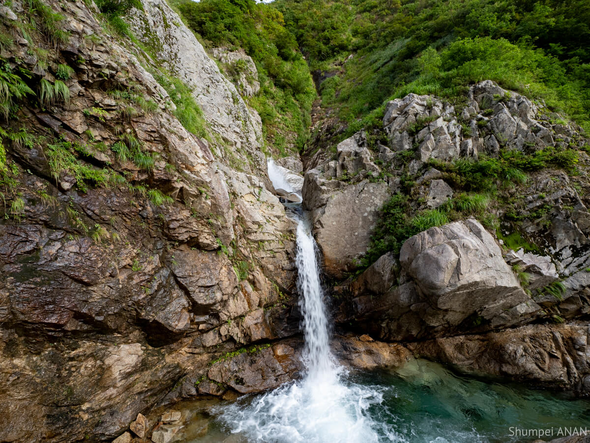 岩盤が発達した沢だが、森はとても近く高巻きもそれほど苦労はしない。 ナメや釜を持った滝が多く、ポムチムの最も好きなタイプの渓谷だ!