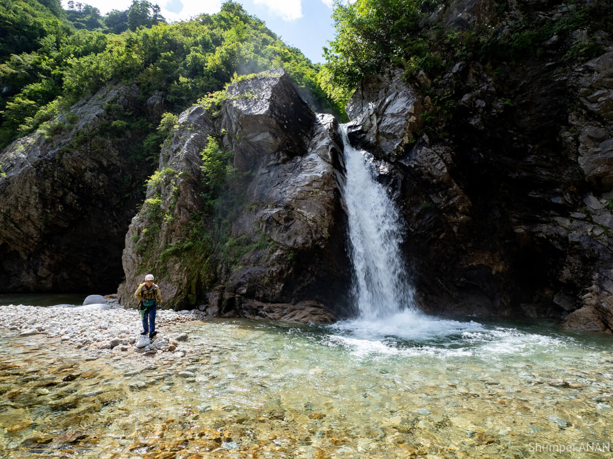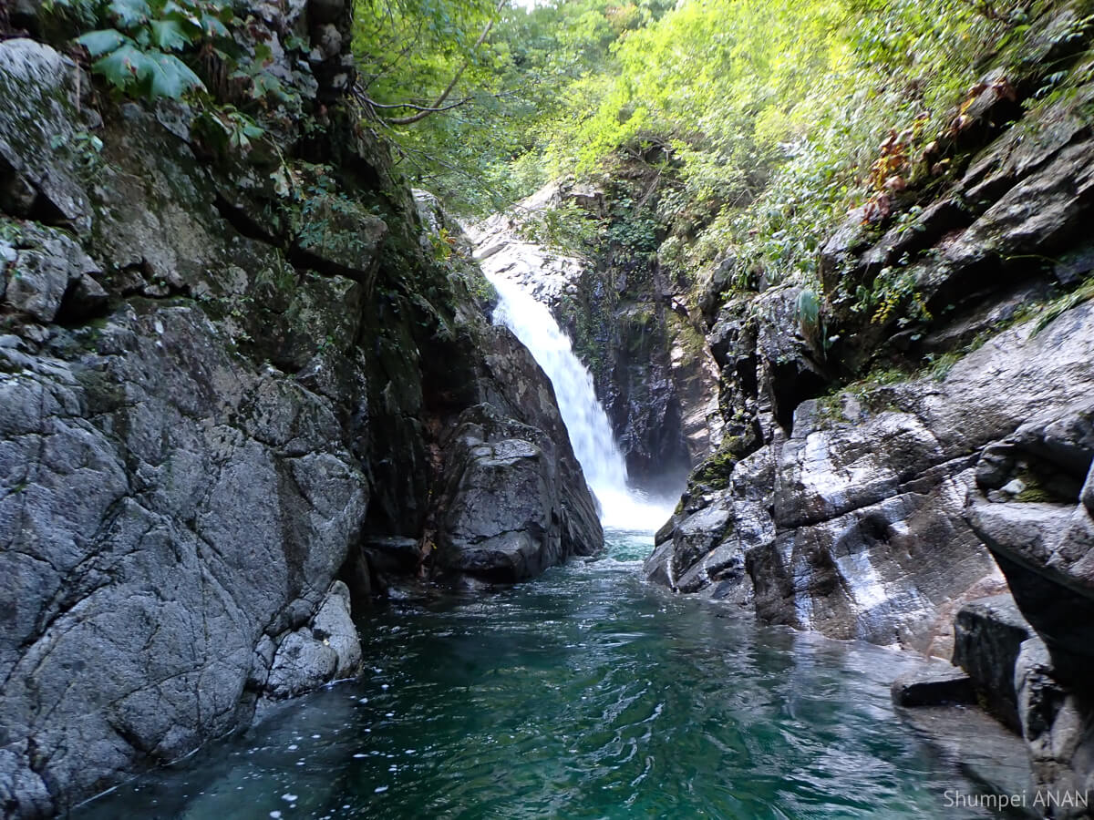 想像をはるかに超える美しさ、完成された滝前の空間 朝日連峰屈指の美瀑がここにあった!