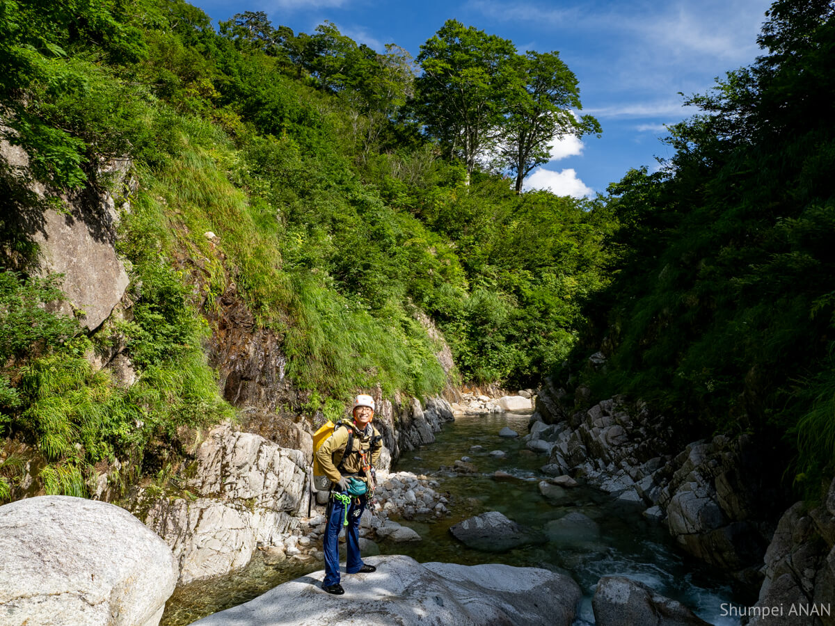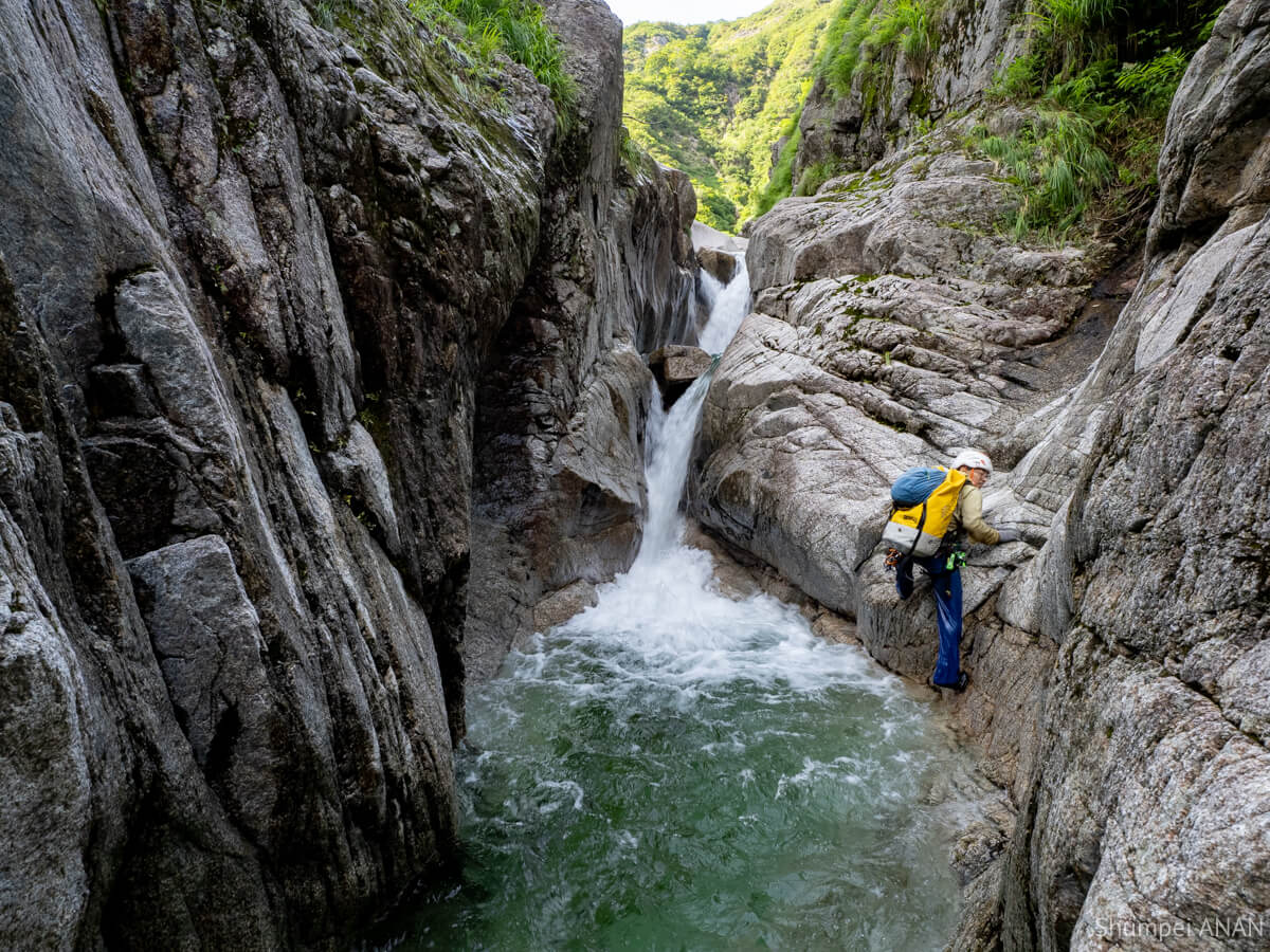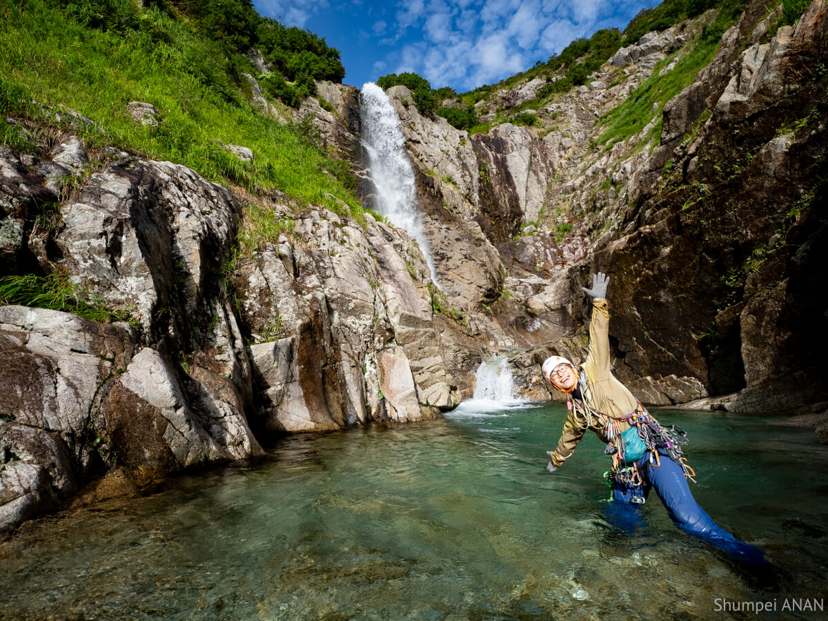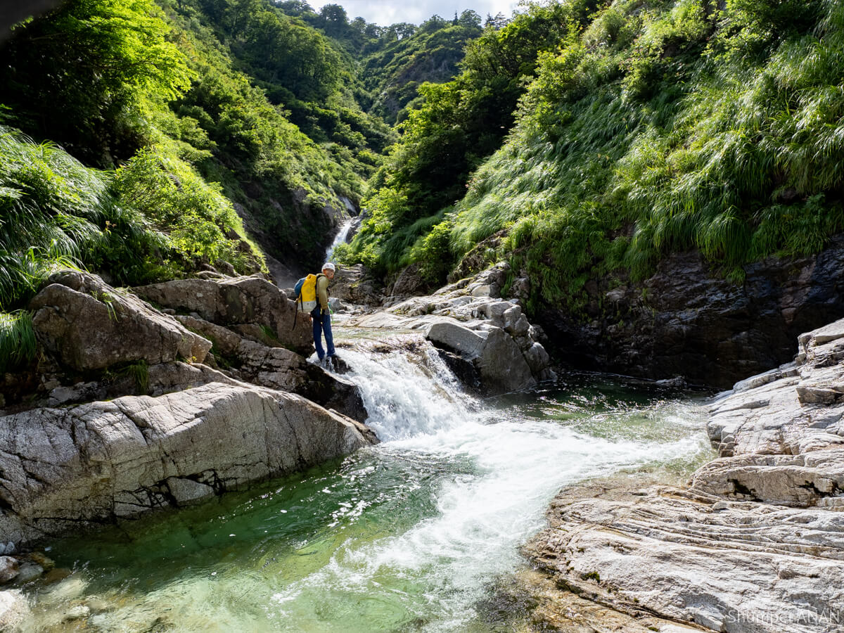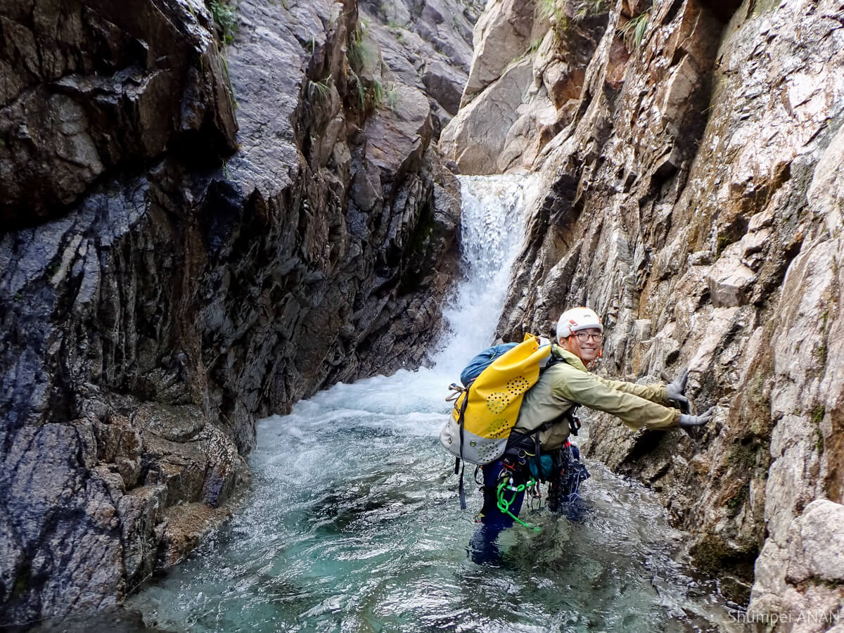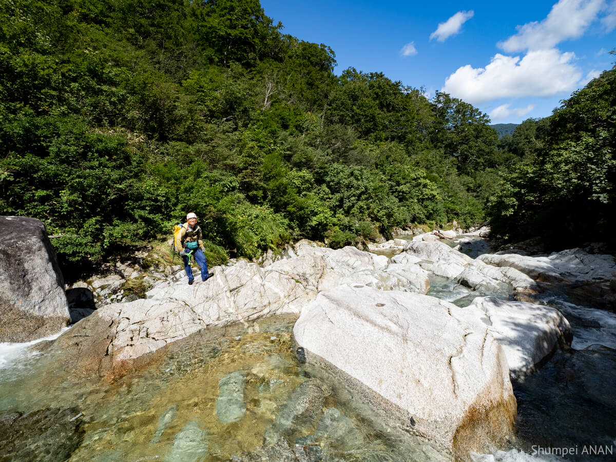 これより先は一層美しい。どこを切り取っても綺麗な沢だ 終始ハイライトとなる区間が続き、沢へ行ける機会が少ない中澤さんも大喜びしている。