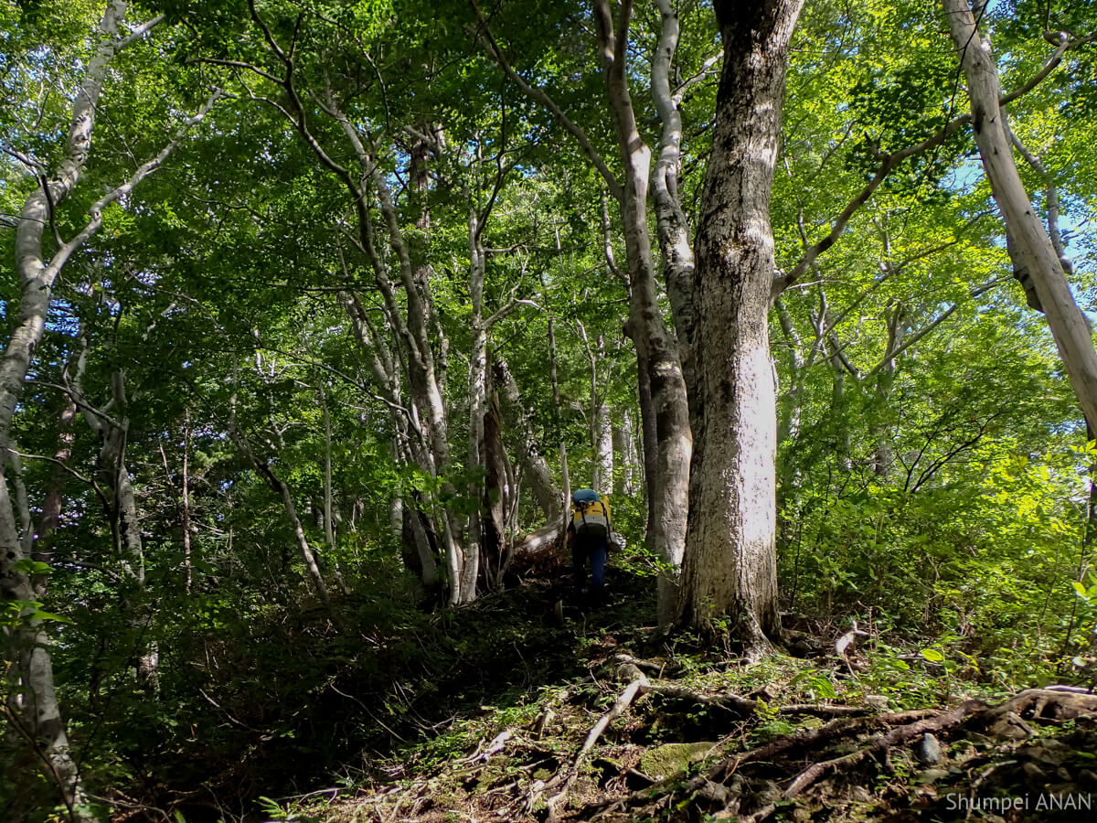 早朝、まだ夜が明ける前から集合して、まずはアプローチの登山。 これが長くて堪えること! 急登は少ないが、ダラダラと長〜い登山。 天狗に着いた頃にはも天狗小屋で一泊して帰ってもいいんじゃ無いかと思えるほど消耗した。