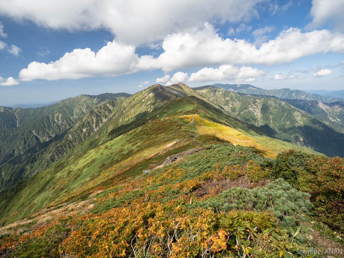 9/28 Co1020幕営地(6:40)-稜線(9:30)-日暮沢小屋(13:40)